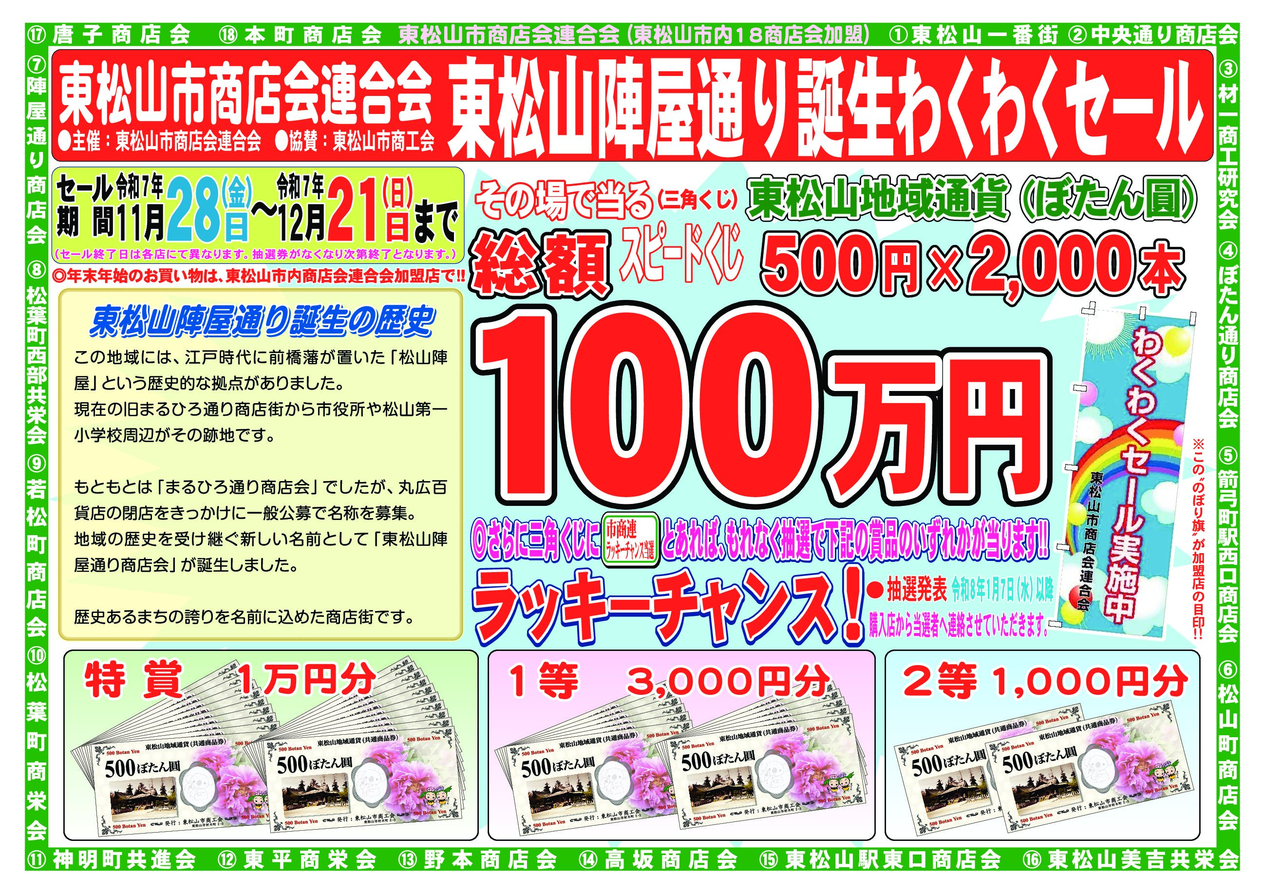 その場で当たるスピードくじ(三角くじ) 地域通貨「ぼたん圓」500円×2000本